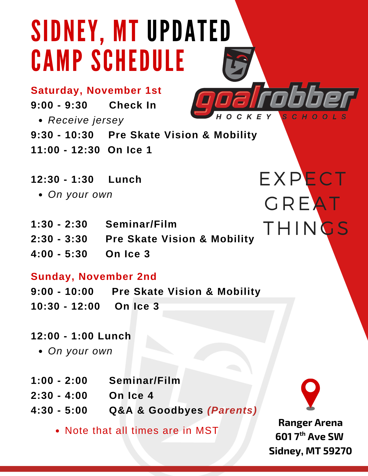 Complete this registration and the following payment page to secure your spot. Registration spots will be reserved on a first come first serve basis. Once camp is full, we will create a waiting list on the same basis. This camp is intended for goalies ages 10 – 18 years old.